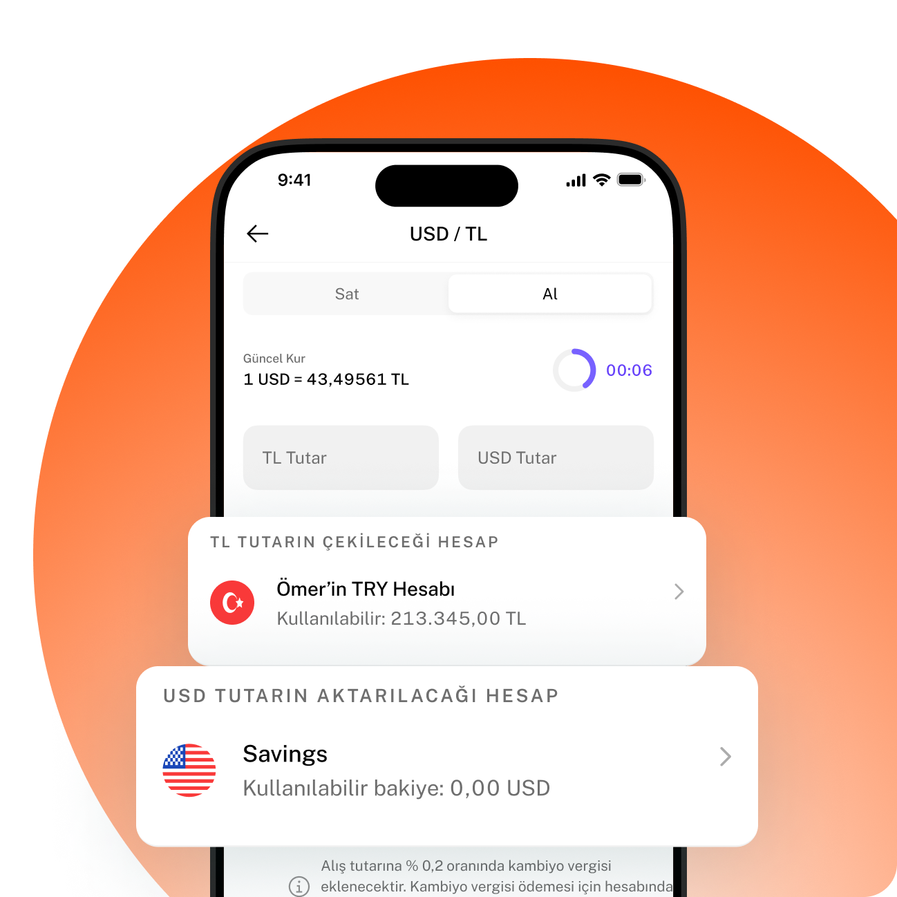 Saniyeler içerisinde döviz ya da kıymetli maden hesabı açarak, avantajlı kur dönüşümleri ile alım satım işlemlerinizi gerçekleştirebilirsiniz.
