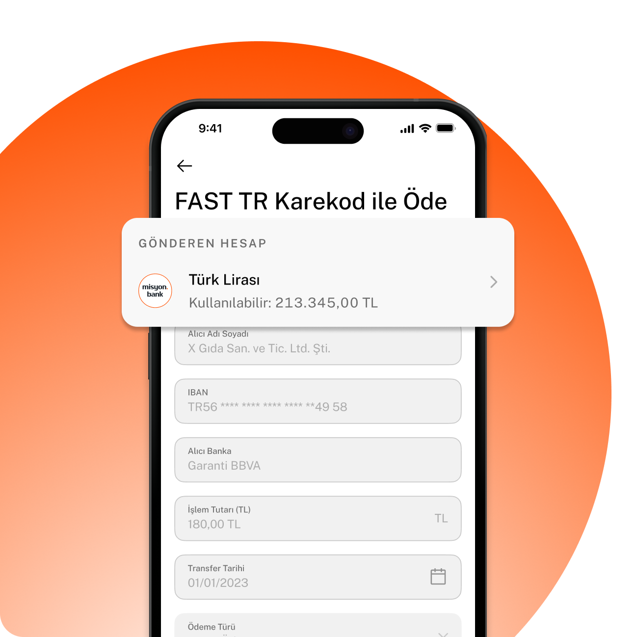 Karekod İle ödeme işlemlerinizi Misyon Bank Mobil'de yapın.
